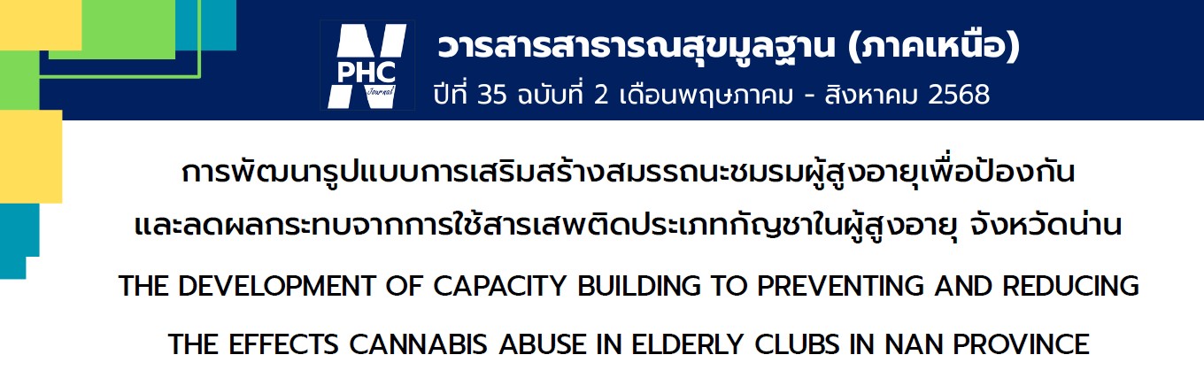 ปีที่ 35 ฉบับที่ 2 (2025): วารสารสาธารณสุขมูลฐาน (ภาคเหนือ) พฤษภาคม - สิงหาคม