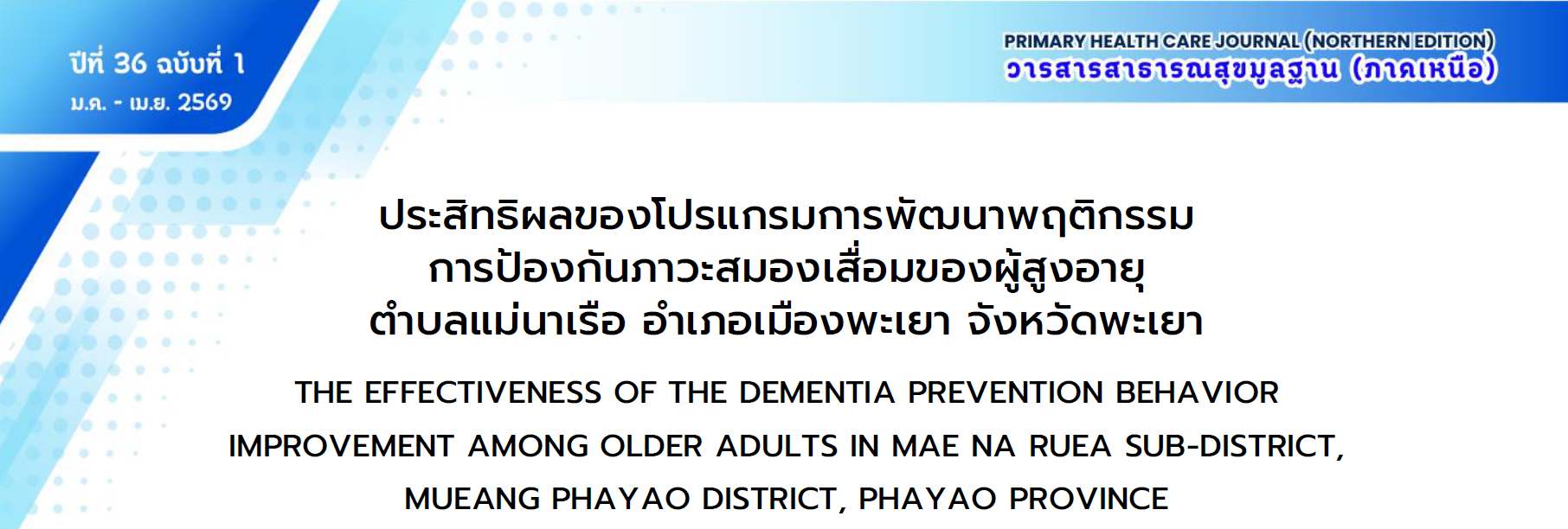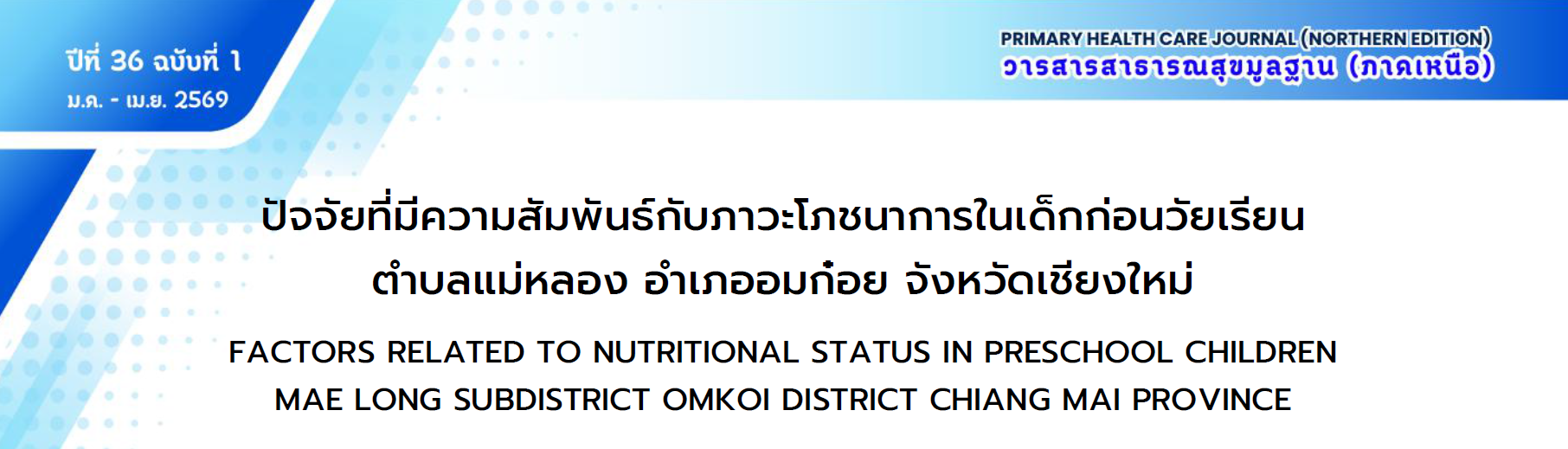 ปีที่ 35 ฉบับที่ 3 (2025): วารสารสาธารณสุขมูลฐาน (ภาคเหนือ) กันยายน - ธันวาคม