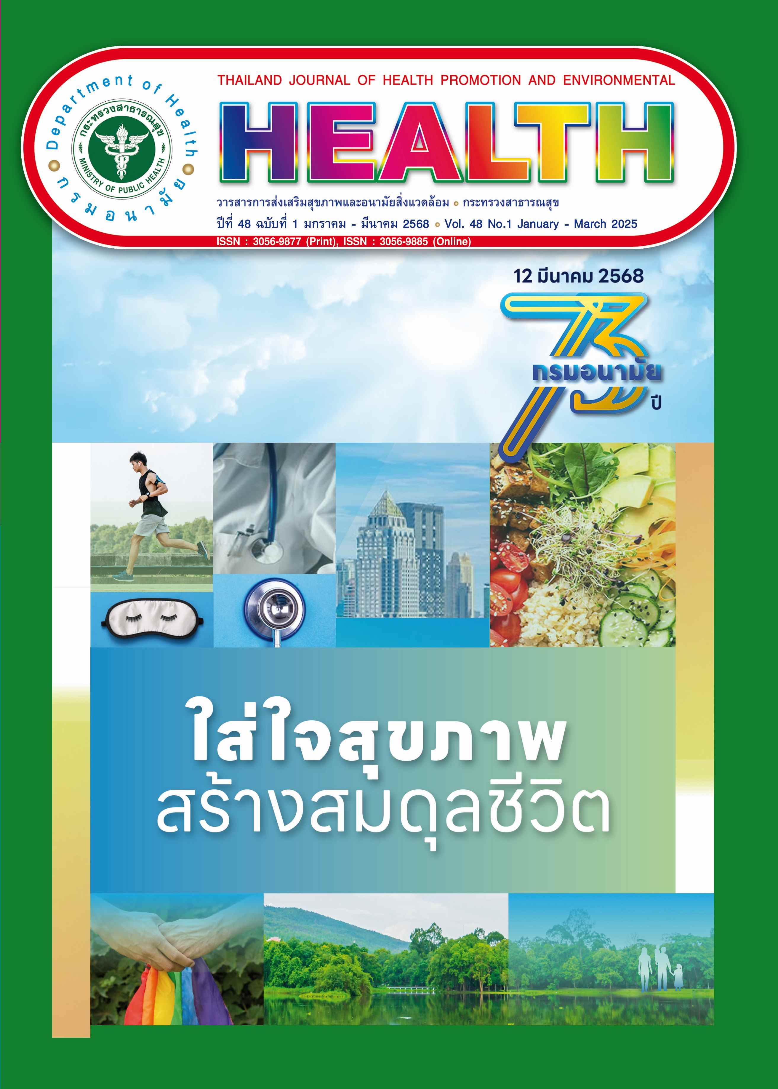 Thailand Journal of Health Promotion and Environmental Health welcomes all kinds of articles related to health promotion and environmental health, i.e. editorials, review articles, letter to editor, or short communications. Each article must not be published elsewhere before, and length of the article should not exceed 10 pages