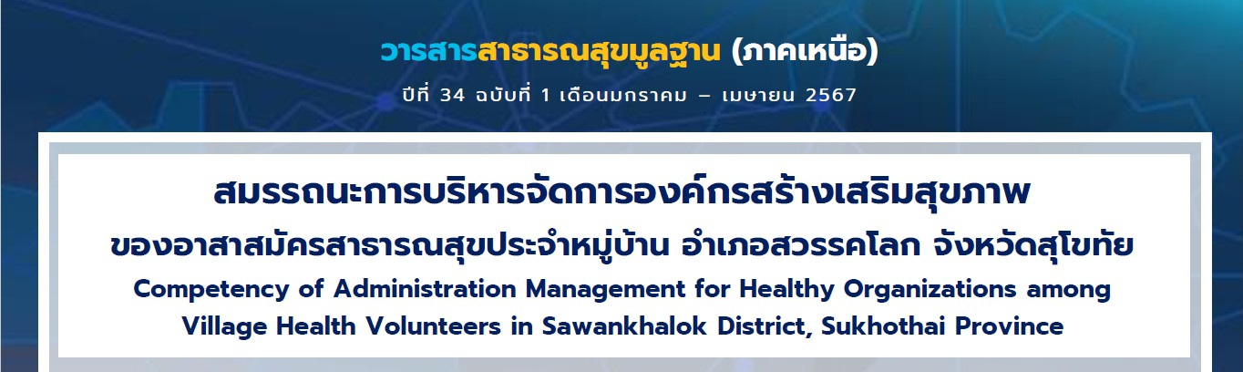 สมรรถนะการบริหารจัดการองค์กรสร้างเสริมสุขภาพ ของอาสาสมัครสาธารณสุขประจำหมู่บ้าน อำเภอสวรรคโลก จังหวัดสุโขทัย