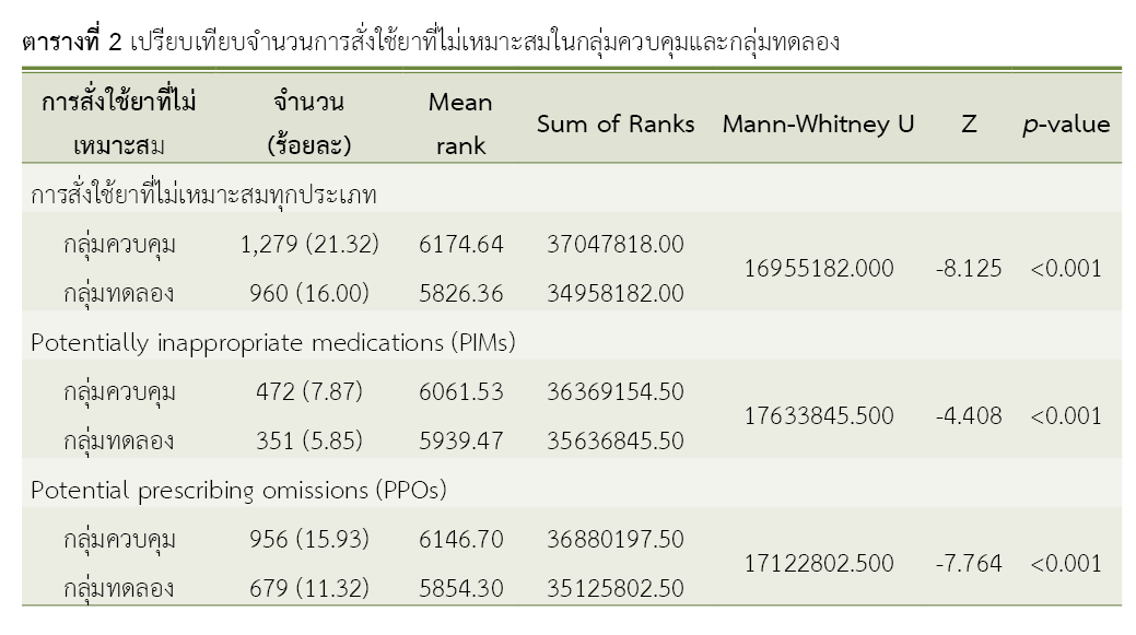 Objective: To study the effect of an electronic prescription screening program on reducing inappropriate medication prescriptions for elderly outpatients (≥65 years) at Phatthalung Hospital.